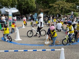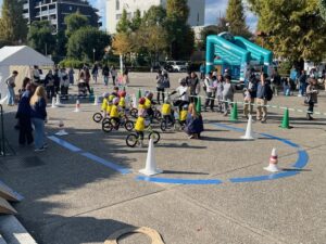 イベントでは、自転車に乗るためのバランス能力等の運動スキルを身につけることができる「キックバイク教室」や、実際の道路を想定したコースで自転車ルールを学べる「かそうどうろ体験」を実施し、たくさんの子どもたちにご参加いただきました。教室が終わると、子どもたちから飛び切りの笑顔で「楽しかった!」「もっと乗りたい!」と感想をいただき、運営側もみんな笑顔になりました😊